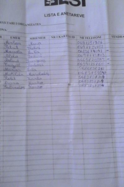 Në foto shfaqet skema e blerjes se votes nga LSI qe denoncon qytetari ne Za’Lart. Ja formulari qe duhet plotesuar, 10 000 leke per 60 emra qe perkthehen ne 60 vota. Shtabet e partive me pas kryejne verifikimet me telefon.