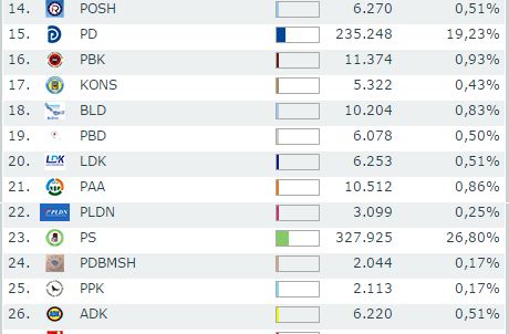 PS ka grumbulluar 326.822 vota ose 26,80%.