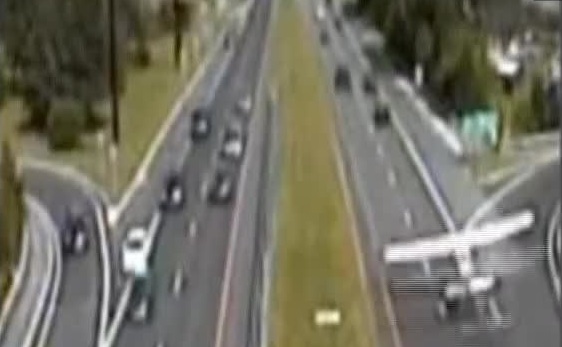 Videoja, tregon avionin duke lëvizur sipër autostradës me dy korsi. Në avion ishin 5 pasagjerë.