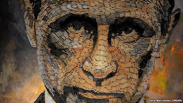 FOTO/ “Fytyra e luftës” – portreti i Putinit me 5 mijë fishekë