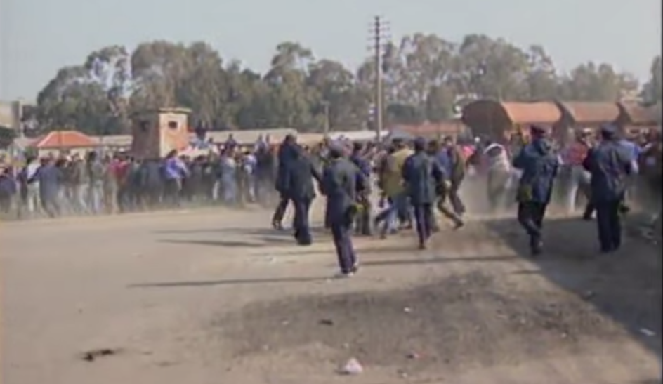 Një person shihet i shtrirë në tokë, por nuk dihet nëse ka vdekur apo është plagosur rëndë. Pas përleshjeve, policia arriti ta mbrapste turmën jashtë portit.