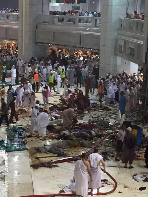 Moti i keq me reshje të dendura dhe stuhi të fuqishme që ka filluar pasdite në Mekë ka shkaktuar rrëzimin e një vinçi në oborrin e Qabes, duke shkaktuar vdekjen e të paktën 65 haxhinjve ndërsa 154 të tjerë janë lënduar.