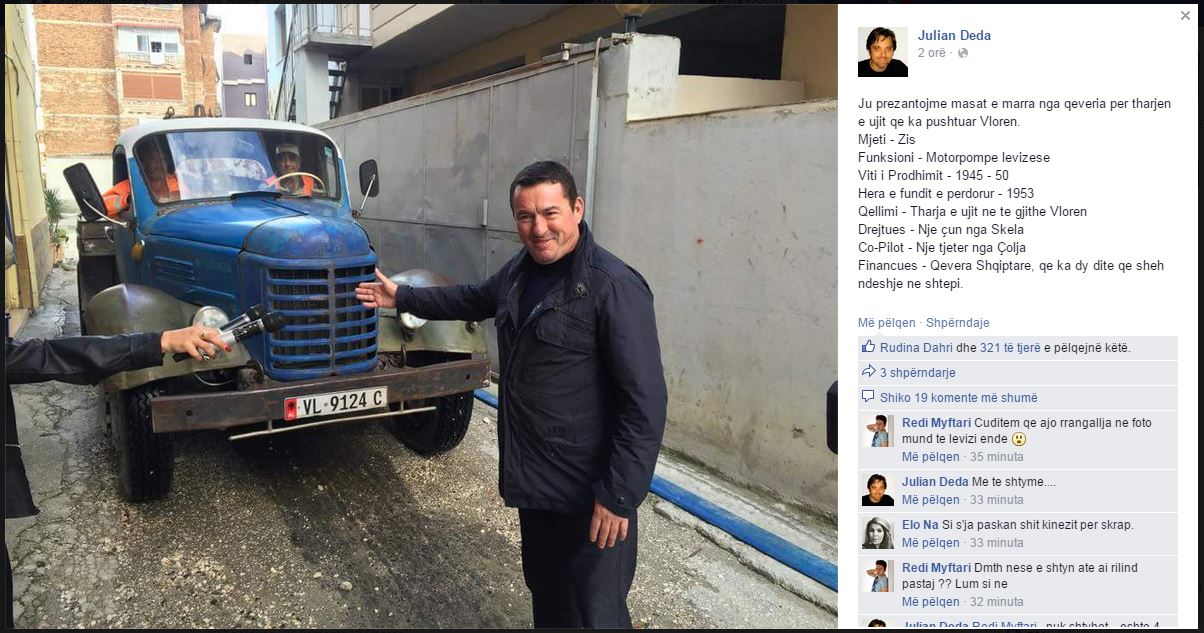 Personazhi i njohur i artit, Julian Deda, ka postuar këtë foto në profilin e tij në “Facebook”. Fotoja me sa duket nga “përmbajtja”, mban për autor deputetin Dashamir Tahiri.