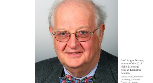 Angus Deaton fitoi çmimin Nobel 2015 për ekonominë. Deaton u vlerësua me këtë çmim për studimet e tij mbi konsumin, varfërinë dhe mirëqenien.