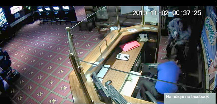 Ngjarja ka ndodhur dy ditë më parë në orën 00:37 minuta. Një person më maskë i armatosur me një kallashnikov i drejtohet arkës së kazinosë dhe i kërkon punonjësit të mbushë arkën. Në video shihen dy persona që kanë bërë grabitjen, me armë duke i kërcënuar punonjësit për tju dhënë të gjitha lekët që ndodheshin në arkë.