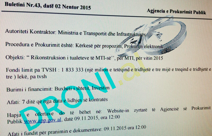 Mbi 18 milionë lekë (të vjetra) ka tenderuar kjo ministri për rikonstruksionin e WC-ve, ofertat për të cilat hapen nesër në mesditë.