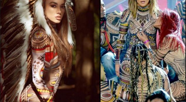 Body-n e dizajnuar nga Dsquared2 që Jennifer pati veshur e kemi parë më parë në trupin e Elvana Gjatës. Megjithëse veshjet janë të ngjashme nga pamja materiali i tyre ndryshon pasi ajo në trupin e yllit botëror është e punuar me dorë dhe e qendisur me gurë. Këtë veshje Elvana e veshi javë më parë në fotosesionin e ri ku u paraqit si indiane.