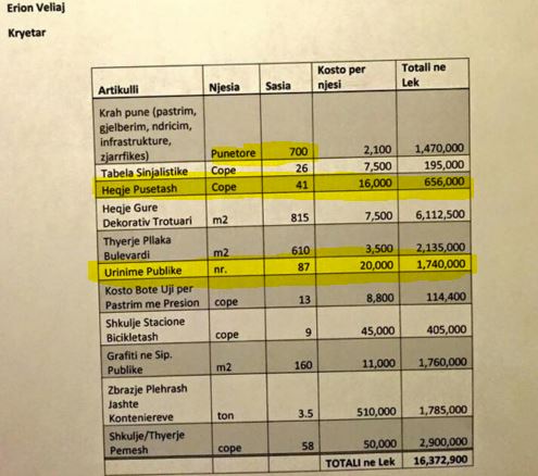 Sipas kryetarit të Bashkisë sot në Tiranë kanë urinuar 87 persona duke i shkaktuar një dëm kryeqytetit në 1.740.000 lekë.