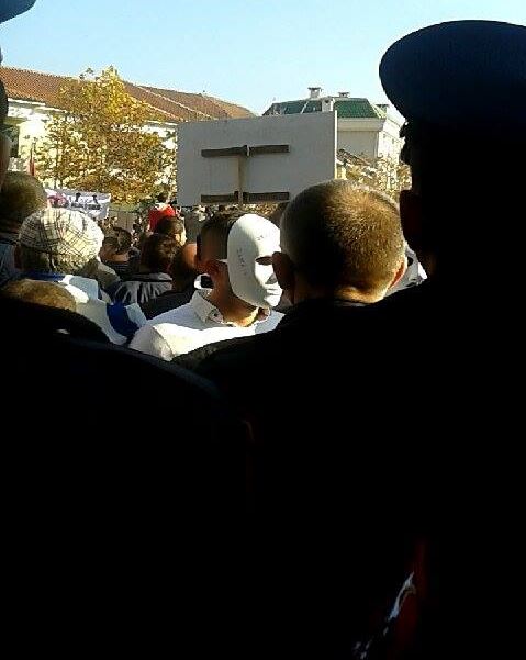 Në protestën e sotme janë shfaqur disa të rinj me maska të bardha ata nuk mund të mos binin sërish në sy në protestën e opozitës para parlamentit. Bëhet fjalë për të rinjtë e “Korpusit Azem Hajdari”, të cilët ndryshe nga protesta e kaluar ku ishin veshur me të zeza, janë veshur me bluza të bardha ku nga bashkimi i tyre lexohet fjala “Populli” dhe në fytyrë mbajnë maska të bardha. Ata shërbejnë si kordon mes protestuesve dhe policisë. Ata janë quajtur “Korpusi Rinor Azem Hajdari”, ose shkurt, “KRAH.