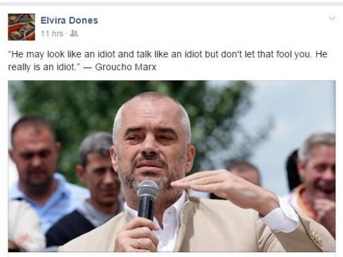 Me plot gojën mund të quhet “e pabesueshme” që do të vinte dita e që shkrimtarja Elvira Dones do të shpërthente kundër Edi Ramës. Por ja, “fundi i botës” ishte më i besueshëm se “fundi i miqësisë” Dones – Rama. Por me gjithë mosbesimin, faktet janë konkrete dhe këto na i jep vetë shkrimtarja e cila poston në rrjetet sociale, një “thënie lapidar” të komedianit amerikan, Graucho Marx.