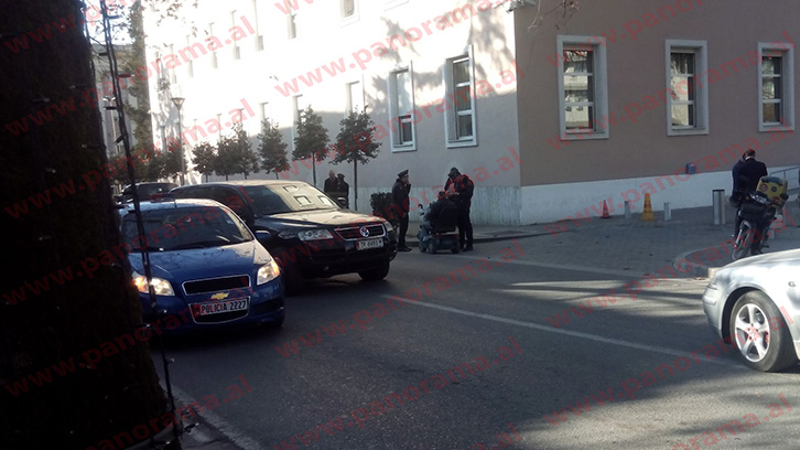 Fotoja, pse jo tronditëse, tregon efektivë të Policisë së Shtetit duke gjobitur një person me aftësi të kufizuara, i cili kalon në rrugën në krah të Kryeministrisë me motorin që përdor kjo kategori njerëzish.