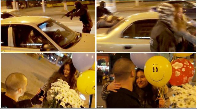 Një burrë në Rostov të Rusisë, zgjodhi një mënyrë të çuditshme për t’i propozuar për martesë të dashurës së tij.