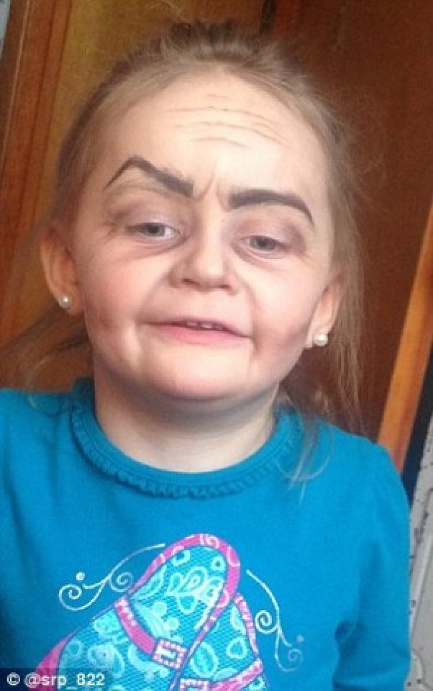 Interneti është çmendur nga disa fotografi të 3-vjeçares e cila ka bërë një rregullim me makijazh të stilit Benjamin Button.