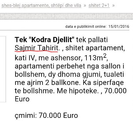 Ka Saimir Tahirin në pallat. Cmimi që ka vendosur për shtëpinë në fakt është pak nën tregun e “real estate” në atë zonë.