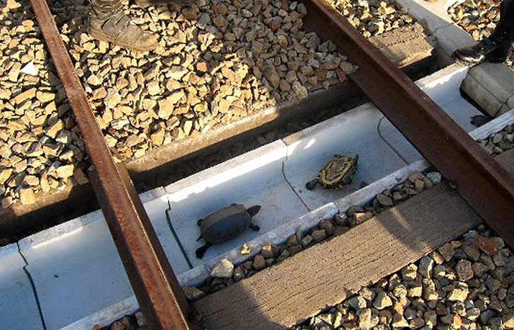 Kompanitë hekurudhore japoneze kanë filluar instalimin e tuneleve për breshka, që ju mundëson atyre të kalojnë nën binarët e trenit dhe kështu shmangen fatkeqësitë.