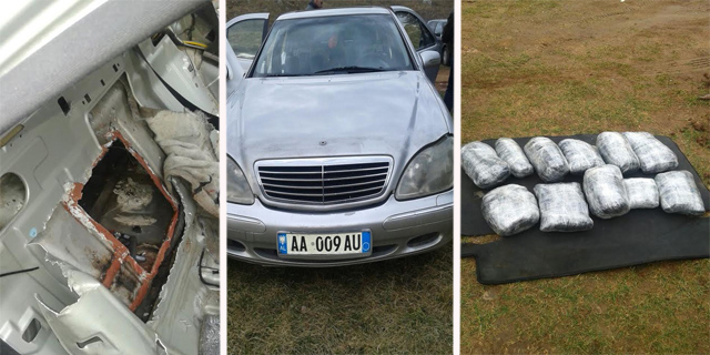 Në vijim të punës, në lidhje me këtë rast, gjatë kontrollit që Policia ushtroi automjetit tip Benz me targë AA009 AU, rezultoi se në pjesën e serbatorit, u gjetën të fshehura si dhe u bllokuan me cilësinë e provës materiale :