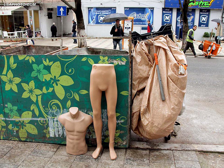 FOTO LAJM/ Falimenton biznesi, manekini “zhvesh” rrobat firmato dhe përfundon në plehra