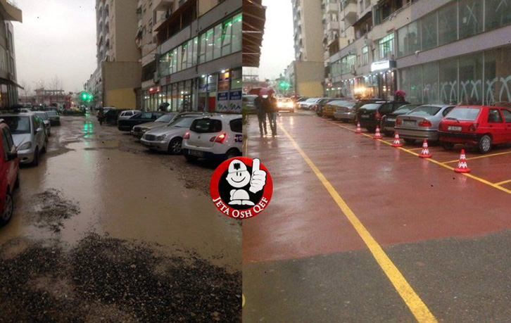 Në foto duket qartë gjendja e mjerueshme në të cilën ka qenë kjo rrugë dhe gjendja e sotshme falë investimit të pronarit të lokalit, i cili në fund të fundit ka bërë një detyrë që i përket vetë Bashkisë. Jo falënderim që nuk mori, por u detyrua të paguajë edhe një gjobë prej 5.000 lekësh për ndotje të hapësirës publike, vijon më tej “Jeta osh qef”, ndërsa publikon edhe mesazhin denoncues të gjobitjes së  qytetarit.
