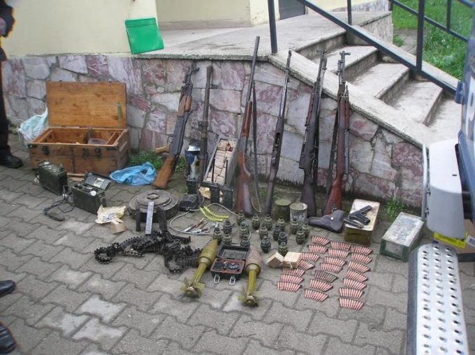Polica ka zbuluar një arsenal municionesh, armë dhe sasi droge.