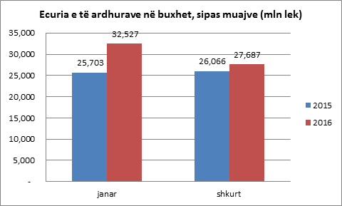 Në muajin janar të ardhurat u rriten me 26 për qind krahasuar me janarin e vitit 2015. Rritja e fortë e janarit i dedikohet në fakt problemeve që kaluan arkëtimet e taksave në fillim të vitit që shkoi për shkak të problemeve që solli instalimi i sistemit të ri on-line. Niveli i ulët i të ardhurave në janar 2015 (baza më e vogël) “ndihmoi” në një rritje të lartë te të ardhurave në janarin e këtij viti, por duket se ritmet e rritjes janë ngadalësuar ndjeshëm në shkurt.