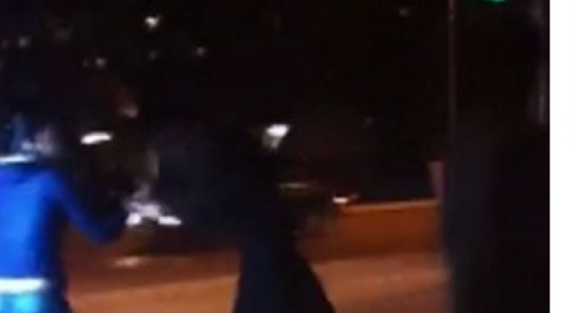 4 të rinjtë janë kapur edhe për flokësh në mes të rrugës duke bllokuar edhe trafikun dhe as ndërhyrja e policit nuk e ka ndërprerë sherrin .