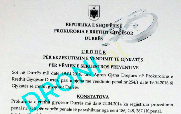 Pikërisht në këtë datë (24. 04. 2016), Prokuroria e Rrethit Gjyqësor në Durrës ka regjistruar procedimin penal nr. 715, për veprat penale të parashikuara nga nenet 186, 248 dhe 287 i Kodit Penal.