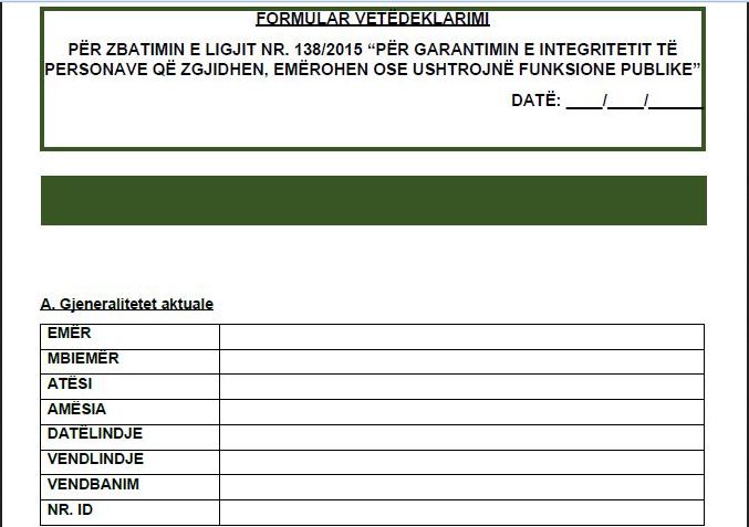 Interesi i zyrtarëve të lartë, të zgjedhur qendror e vendorë, duket shumë i ulët për plotësimin e dorëzimin e formularit të vetëdeklarimit, i njohur ndryshe i “dekriminalizimit”.