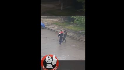 Dy burra fillimisht debatojnë dhe pastaj godasin njëri tjetrin me shpulla dhe grushte derisa vjen policia.