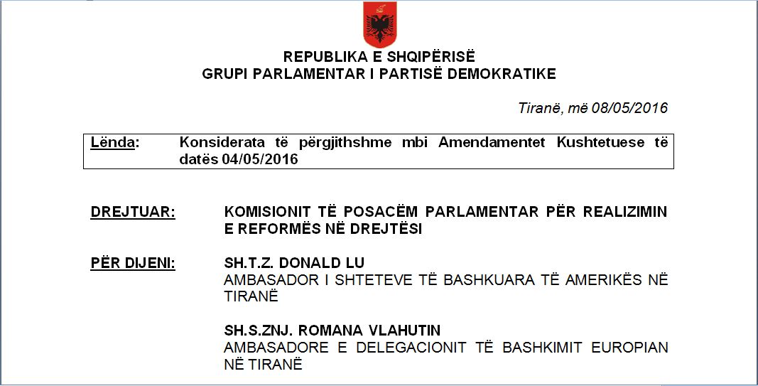Lënda: Konsiderata të përgjithshme mbi Amendamentet Kushtetuese të datës 04/05/2016