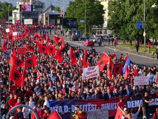 Më tepër se 20,000 njerëz iu përgjigjën thirrjeve të partive opozitare shqiptare për të marrë pjesë në marshimin paqësor për drejtësi në Shkup të hënën.