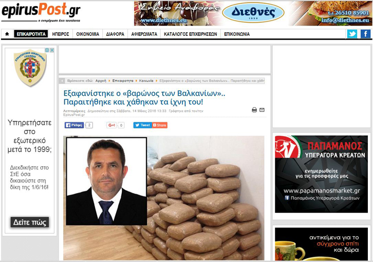 Pas lajmit se i quajturi “Escobari i Ballkanit” u zhduk pa lënë gjurmë dhe policia dështoi në tentativën e saj për ta gjetur në banesë, EpirusPost.gr shkrun se, pak ditë pas paralajmërimeve të policisë greke për të çmontuar rrjetin më të madh të trafikimit në Evropë, një nga organizatorët arriti që të zhdukej!