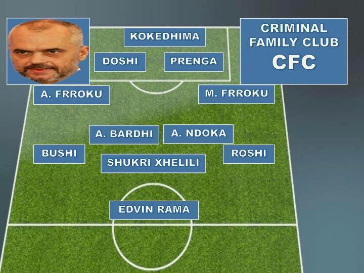 Rrjetet sociale po shpërndajnë një skemë të klubit të futbollit Rilindja në të cilin njëmbëdhjetëshja e PS përfaqësohet nga emrat të përfolur për lidhje me krimin apo të konfirmuara tashmë.