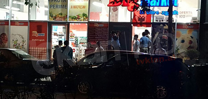 Në tentativë për t’u larguar nga marketi, agresori ka qëlluar sërish mbi punonjësen.