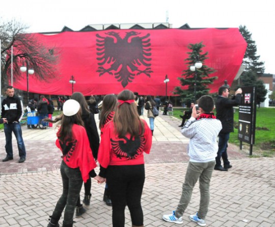 Një flamur kombëtar 400 metra katrorë është shpalosur sot në qytetin e Fierit. Ndeshja Rumani – Shqipëri është arsyeja e kësaj nisme të Shoqatës për Bashkim Kombëtar dhe disa sportdashëve. Ata urojnë që Shqipëria të fitojë sot për të vijuar garën në Europianin e parë në historinë e kuqezinjve. .