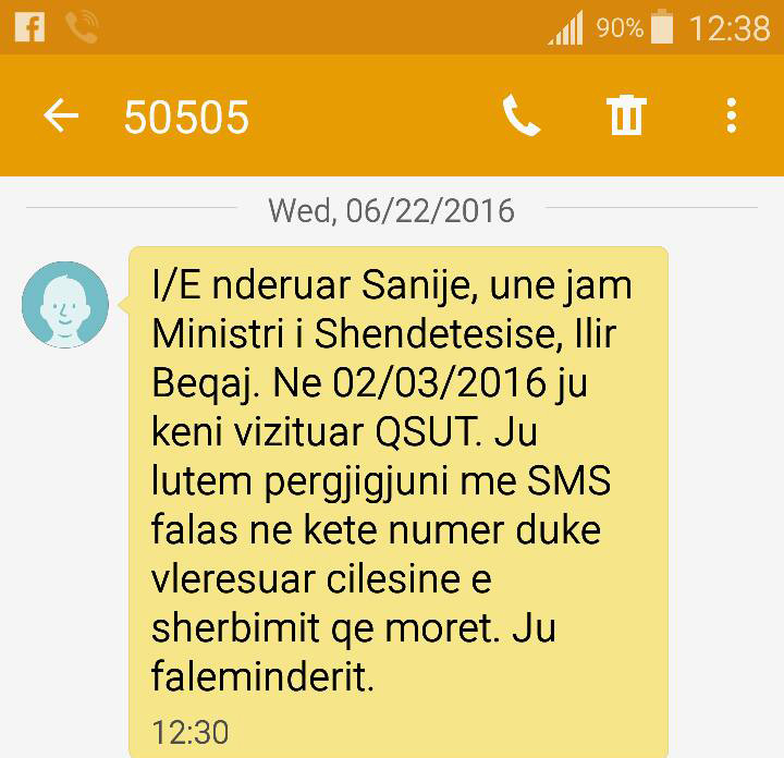 Nëna ka dy muaj që ka vdekur, Beqaj e pyet me sms për cilësinë shërbimit në spital