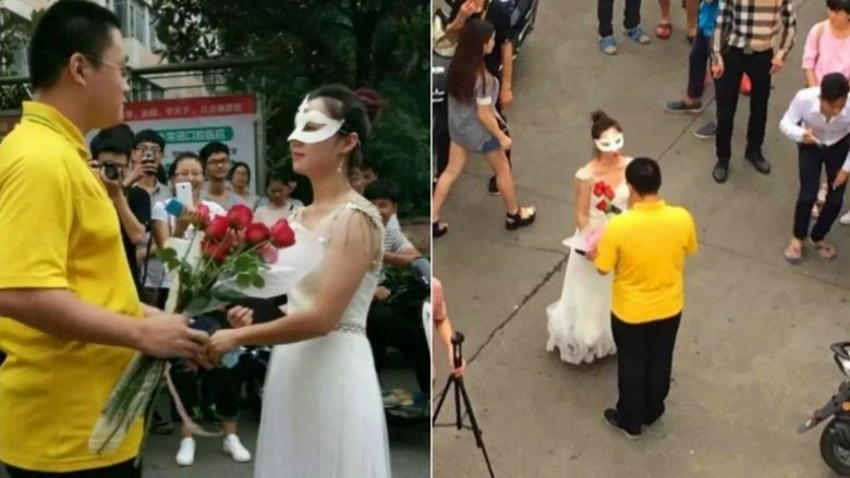 Ligjëruesja që kishte rënë në dashuri me nxënësin dhjetë vite më të ri, ka pasur të veshur një fustan të bardh dhe një maskë në fytyrë në momentin që i ka kërkuar të martohen, para një turme që ndodhej para Universitetit Hunan, transmeton Telegrafi.