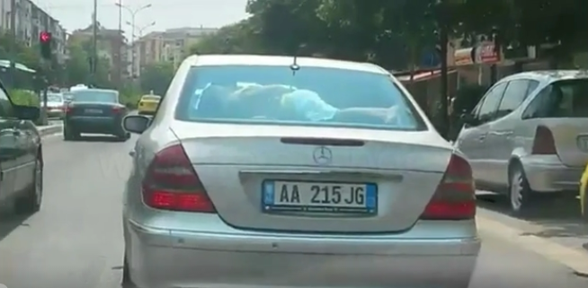Zakonisht ajo që shikojmë rëndom në pjesën e pasme të makinave në Shqipëri është “Kujdes, jam shofere e re”. Por, sot një automjet i ka habitur të gjithë, kalimtarë dhe shoferë, pas makinës ai kishte vendosur një djalë të vogël, i cili mesa duket po flinte.