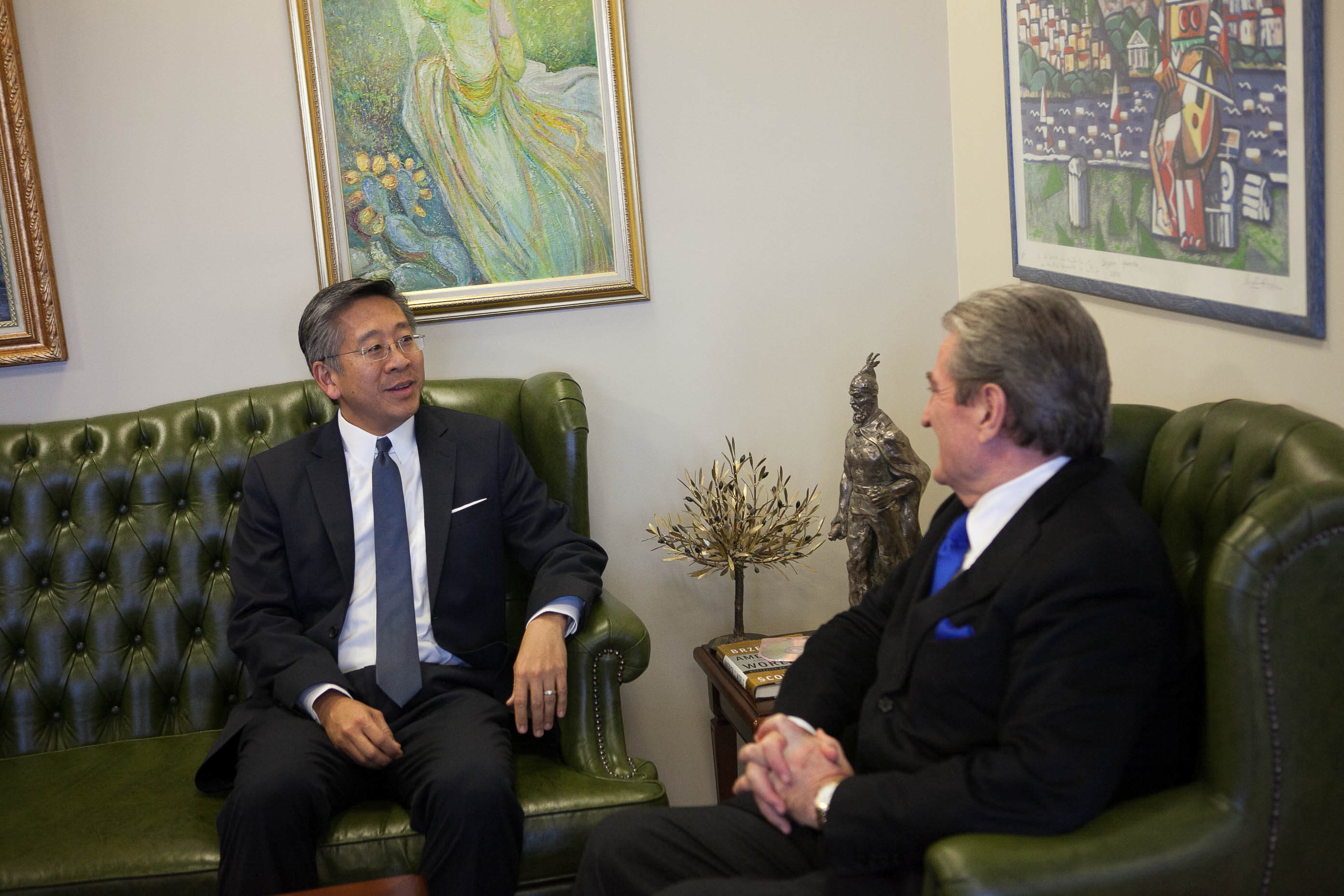 Ambasadori amerikan Donald Lu ka shkuar të takojë ish-Kryeministrin Sali Berisha në zyrë sapo ka përfunduar mbledhja e grupit parlamentar të PD për Reformën në Drejtësi.