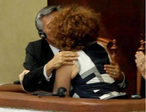 Donald Lu dhe Romana Vlahutin festojnë miratimin e reformës në drejtësi.