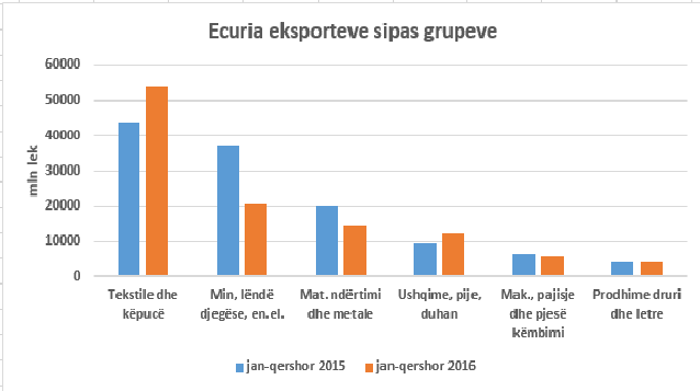 “Mineralet, lëndët djegëse dhe energjia” dhe “materialet e ndërtimit e metalet”, janë përkatësisht grupi i dytë dhe i tretë më i madh i eksportuar në vend dhe që nuk po arrijnë të ngrenë kokë përgjatë këtij viti.