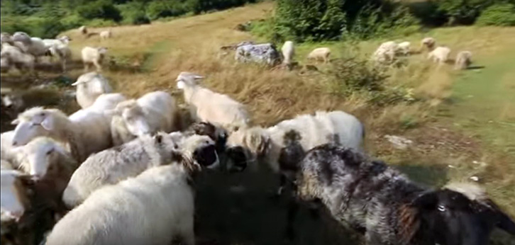 Në video duket edhe një bari me fyell, tipik për zonën e bjeshkëve…, që shoqëron këtë “përplasje brirësh”.