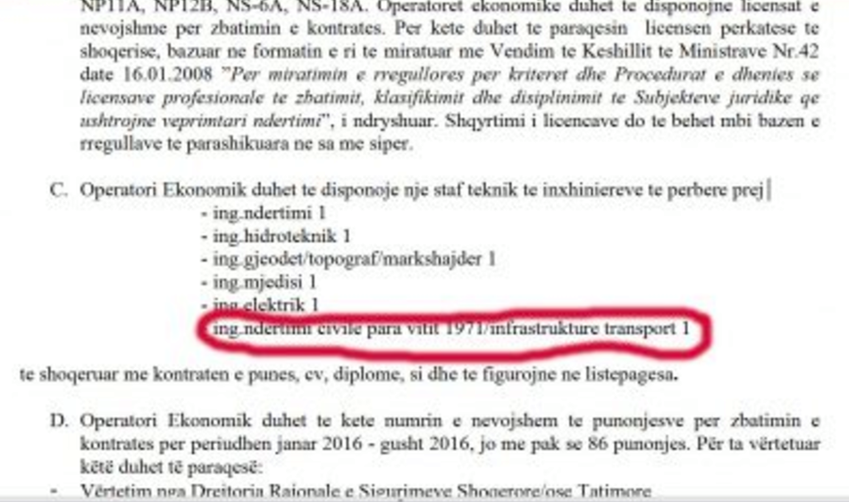 Firma duhet të ketë 5 inxhiniere. Njëri prej tyre duhet të ketë diplomën e vitit 1971!!!