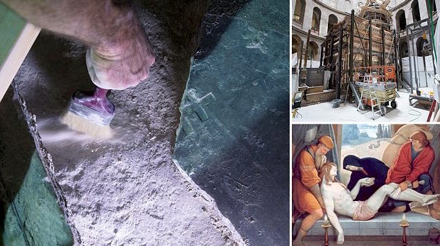 Image GalleryPllaka e gurit gëlqeror ku thuhet se trupi i Jezu Krishtit është vendosur pas kryqëzimit të tij është fotografuar për herë të parë.