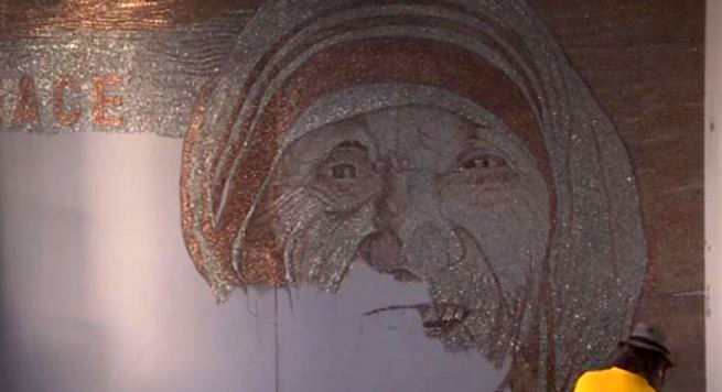Artisti Saimir shqiptar Saimir Strati është duke punuar një mozaik me portretin e humanistes së madhe, Nëna Terezë, në një formë të veçantë. Portreti është duke u punuar në Muzeun e Kosovës, me kapëse teli, në një dimension prej 10 metra katrorë.