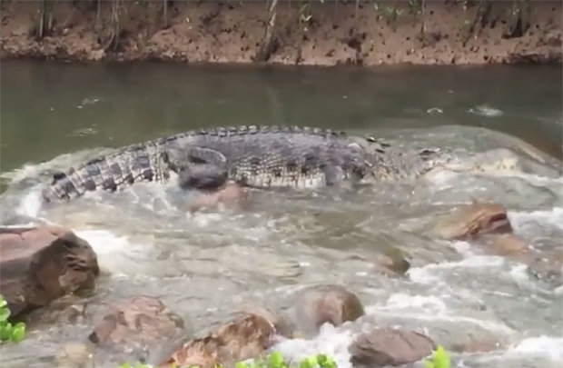Krokodili gjigant ishte kamufluar në një mënyrë të atillë sa nuk dallohej fare deri në momentin që është provokuar nga kallami i Matt Wright dhe ka dalë në sipërfaqe. Gjithçka është filmuar dhe pamjet janë publikuar nga “Daily Mail” dhe rrjetet sociale.