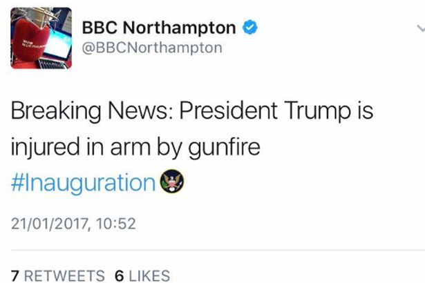 Klikime pa fund lajmit të postuar nga llogaria zyrtare në Tëitter e gjigandit BBC se presidenti i ri i SHBA, Donald Trump është qëlluar me armë zjarri dhe është plagosur.