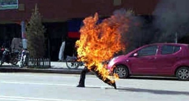 Ka lyer trupin me benzinë dhe i ka vënë flakën vetes.