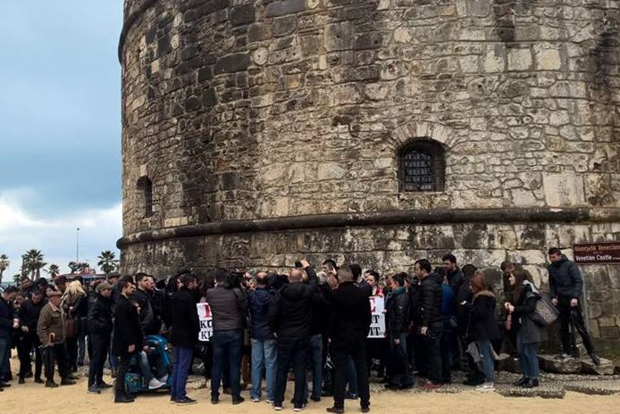 “Sot protestuam kunder betonizimit te mureve rrethuese te kalase se Durresit, kunder shkaterrimit te”Torres Veneciane”, kunder asgjesimit te identitetit tone, nga plani ogurzi i Kryetarit te Bashkise Durres, Vangjush Dako.