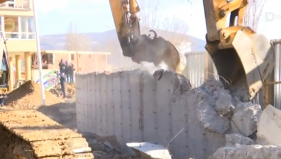 Muri serb në Mitrovicë është shembur nga dy eskavatorë.