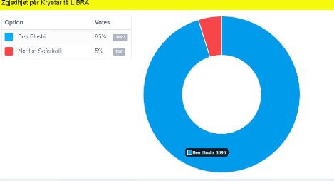Ka përfunduar procesi i zgjedhjeve e brendshme të partisë LIBRA, proces i zhvilluar në mënyrë elektronike. Ben Blushi është zgjedhur kryetar i kësaj force politike me 95% të votave, ndërsa Neritan Seferkolli ka marrë 5 % të votave.